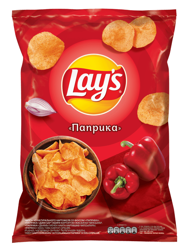 Картоп, өсімдік майлары*, кешенді тағамдық қоспа [бидай ұны, тұз, сүт сарысуының ұнтағы, қант, дәм мен хош иісті күшейткіштер (натрийдің 1-орнын басушы глутаматы, натрийдің 2-орнын басушы 5 '-рибонуклеотидтері, натрийдің 2-орнын басушы 5 ' -гуанилаты), фруктоза, пияз ұнтағы, паприка бұрышының ұнтағы , бояғыш (паприка сығындысы), қызыл тәтті бұрыш ұнтағы, сарымсақ ұнтағы, желе түзуші агент (калий хлориді), тығыздалуға қарсы агент (аморфты кремний диоксиді), ысталған паприка ұнтағы, қышқылдықты реттегіштер (лимон қышқылы, алма қышқылы), дәм мен хош иіс беретін заттар (құрамында қабықты және қара бұрыш сығындылары бар), тотықсыздандырғыш (гүлшетен сығындылары)].